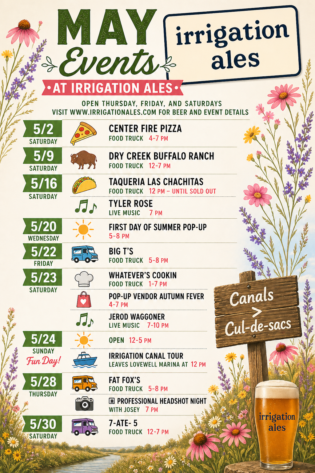 - 5/9 Saturday – Dry Creek Buffalo Ranch food truck 12-7 pm